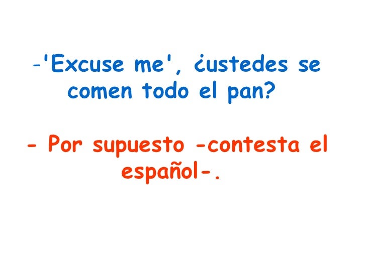 - 4. El español escucha en silencio, imperturbable... El americano sigue mascando chicle e insiste: - ¿Ustedes se comen la mermelada con el pan? - Por supuesto, contesta el español.